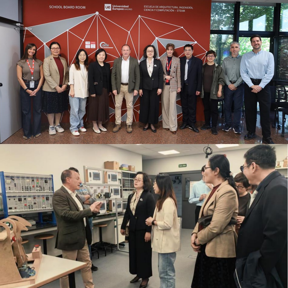 在西班牙马德里欧洲大学访问期间,该校工程学院院长Alberto Sols、国际交流处负责人Daniel Blanco等接待了代表团一行。双方在基于过往合作历史及合作备忘录续签的基础上,进一步明确了合作方向与目标,围绕外籍专家引进、硕士联合培养、博士共同指导及共建实验室等合作领域展开了深入交流。代表团还参观了该校护理学院、建筑与工程学院、计算机工程学院、运动学院的教学科研场所,增进了对该校教学科研实力的了解。