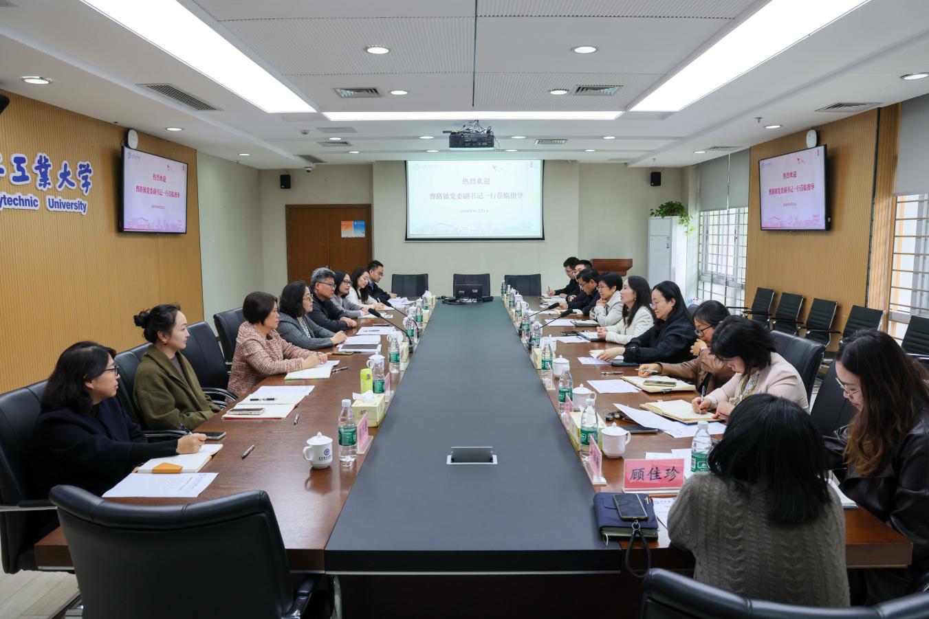 曹路镇党委委员周轶敏、仇惠、唐宜,各社区党委书记及党群工作、纪检、社区服务等部门负责人;我校党委组织部、党委宣传部、纪委办、团委、人事处等相关职能部门负责人参加座谈。