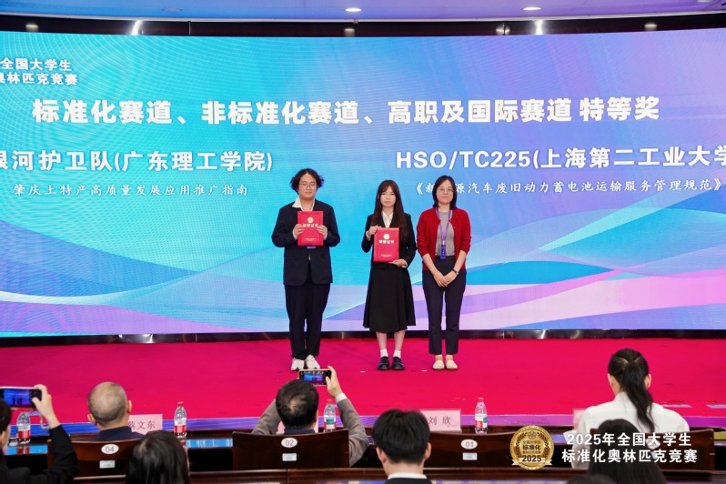 10月19日,由中国计量大学、中国标准化协会及全国标准化大学联盟共同主办的2025年全国大学生标准化奥林匹克竞赛全国总决赛圆满落下帷幕,来自高校、研究院、行业、企业等领域的评审专家组,承办单位代表、参赛选手、指导教师等共计400余人齐聚在中国计量大学。大赛吸引了国内及“一带一路”国际赛道132所高校、757支队伍、5000余名师生报名参赛。经区域初赛、复赛选拔推荐,最终来自浙江大学、中国科学院大学、新加坡国立大学等的81支队伍进入全国总决赛。经过华东赛区区域赛的激烈角逐,经济与管理学院林慧丹、郝皓、李惠、邵洲洲、王尚君五位老师指导的参赛队伍进入全国决赛,其中参赛作品《新能源汽车废旧动力蓄电池运输服务管理规范》荣获非标准化赛道特等奖;《为产业诚根,配一方标土--新能源汽车信用评分标准化》荣获标准化赛道二等奖;《公共图书馆AI适老化服务规范》、《基于社交媒体的文旅会展项目精准营销标准化框架构建研究》分别荣获数据要素与AI标准化专项赛和文化遗产保护传承与文旅标准化专项赛三等奖。“HOS/TC225”荣获非标准化赛道特等奖我校标准化工程产教融合改革专业是上海市应用型本科高校人才培养改革试点专业
