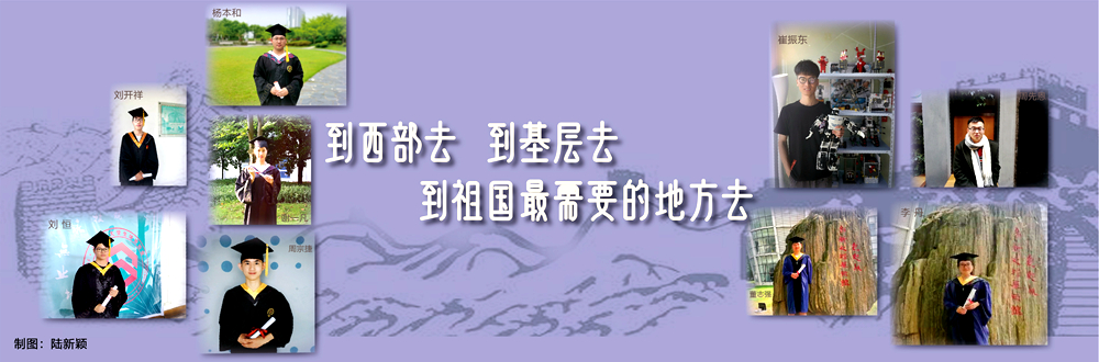 在今年我校3000多名毕业生中,有七位同学通过层层选拔,即将奔赴西藏和新疆等西部地区担任基层公务员,投身于祖国边疆建设,到国家最需要的地方去,体现了当代大学生的情怀和担当。学校授予这七位同学“服务国家特殊需求荣誉毕业生”称号,他们是:工学部董志强、李丹、周宗捷、刘开祥、刘恒;文理学部谢一凡;经济与管理学院杨本和。还有两位同学报名参加了“大学生志愿服务西部计划”,成为了光荣的“西部志愿者”,他们是:高等职业技术(国际)学院周先恩、崔振东。 下面让我们一睹他们的风采吧。