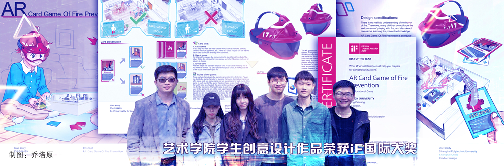 近日,由应用艺术设计学院产品设计系林晨晔、刘哲两位老师指导,冯再旺、费镜霖、兰新、李姝霖四位同学组队的参赛作品“AR Card Game of Fire Prevention”喜获重量级国际大奖——iF设计新秀奖。获奖证书产品设计界的奥斯卡奖  iF设计奖创立于1953年,以“独立、严谨、可靠”的评奖理念闻名于世,素有“产品设计界的奥斯卡奖”之称,是全球工业设计、产品设计界的最高荣誉之一。iF设计新秀奖是其针对全球在校学生所设立的权威设计奖项,此次我校学生作品从全球50多个国家2万余件参赛作品中脱颖而出,成为全球仅有的39件获奖作品之一,实现了二工大学子在此项比赛中零的突破。结合AR技术的教育玩具获奖作品 获奖作品简介  AR Card Game of Fire Prevention是一款教育玩具,结合了AR设备和纸牌游戏,用于儿童防火知识的学习。在游戏中,孩子们可以通过对不同属性卡牌的使用,了解和认识火灾的危害,学会如何应急响应并成功灭火。通过这款教育玩具,既可以提高孩子们学习消防知识的兴趣,也能在潜移默化中培养其消防意识。 以专业社团为载体,凝聚创意设计人才从右至左分别为林晨晔