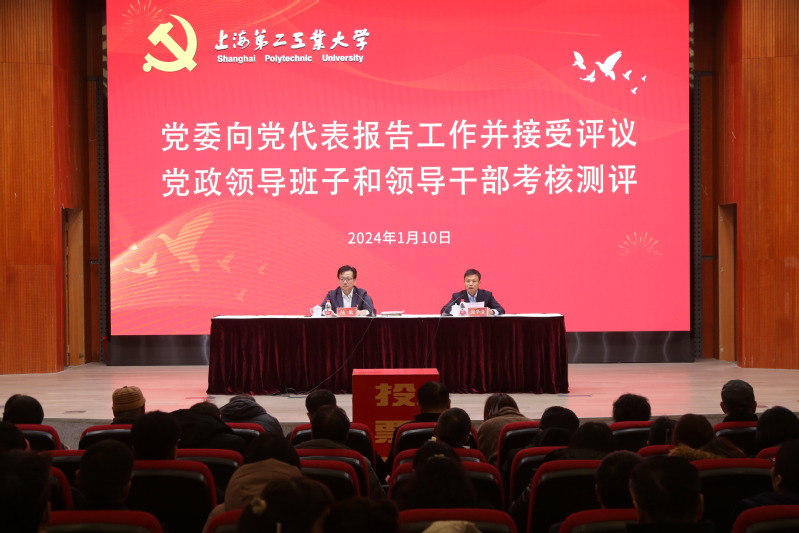 1月10日下午,我校召开2023年度党委向党代表报告工作并接受评议暨校领导班子和领导干部考核述职测评会。党政领导、两委委员、党代表、中层正职干部、民主党派和统战团体主要负责人、离退休老同志代表和教职工代表等参加会议。会议由校党委副书记、校长谢华清同志主持,校党委书记陆敏同志代表学校党政领导班子述职并报告党委年度工作。他紧紧围绕落实全面从严治党主体责任、主动服务国家和上海重大战略、全面深化教育领域综合改革、提升创新策源功能和服务能级、全力服务建设高水平人才高地五个方面全面回顾和总结了2023年度学校领导班子重点工作。他强调,学校领导班子坚持以习近平新时代中国特色社会主义思想为指导,全面贯彻落实党的二十大精神和市第十二次党代会精神,学习贯彻习近平总书记考察上海的重要指示要求,落实立德树人根本任务,坚持稳中求进的工作总基调,以高质量党建引领学校高质量发展。与会党代表对学校党委工作进行了评议,对校领导班子和领导干部进行了民主测评。